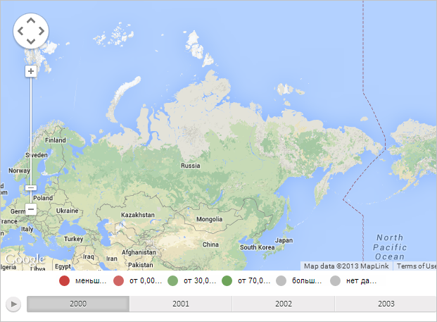 Для выполнения примера необходимо наличие на html-странице компонента MapChart с наименованием «map» (см. «Пример создания компонента MapChart»). Также требуется, чтобы была загружена карта с топоосновой Google (см. страницу описания свойства MapChart.afterGoogleLoad).