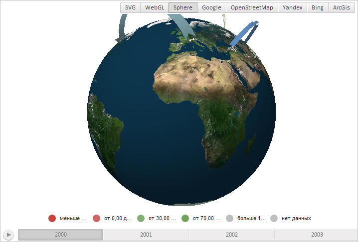 Для выполнения примера необходимо наличие на html-странице компонента MapChart с наименованием «map» и компонента »). Также требуется, чтобы была загружена карта с типом отображения «Sphere» (см. страницу описания свойства MapChart.AmbientLightValueToolBar с наименованием «MapType» (см. «Пример создания компонента MapChart»). Также требуется, чтобы была загружена карта с типом отображения «Sphere» (см. страницу описания свойства MapChart.AmbientLightValue).