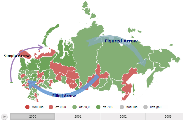 В результате выполнения примера на карте были отображены все доступные стрелки: