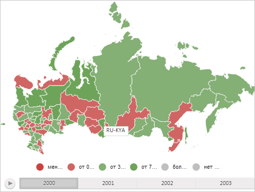В результате выполнения данного строки сценария значок был перемещён в середину нижней границы области карты с идентификатором «RU-KYA»: