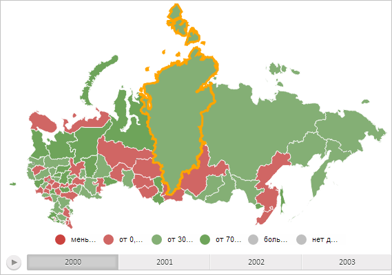 В результате выполнения примера была подсвечена только область слоя карты с идентификатором «RU-KYA», остальные области были удалены: