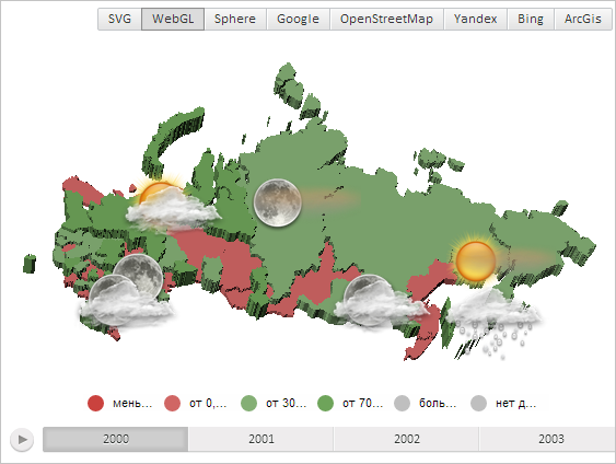 Для выполнения примера необходимо наличие на html-странице компонента MapChart с наименованием «map» (см. «Пример создания компонента MapChart»). Также требуется, чтобы была загружена карта с топоосновой WebGL (см. страницу описания свойства MapChart.TopoNormalization).