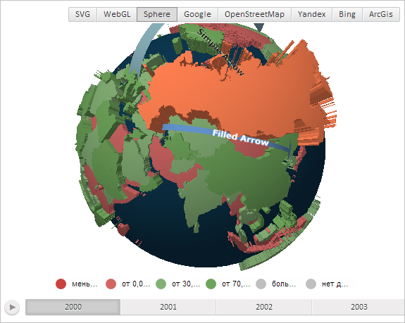 В результате выполнения примера на карте была отрисована область, имеющая идентификатор «RU» с заливкой кораллового цвета и высотой, равной 0,3: