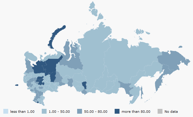 После выполнения примера на html-странице будет размещена карта с топоосновой Russia.svg. Внешний вид карты зависит от настроек, указанных в xml-файле: