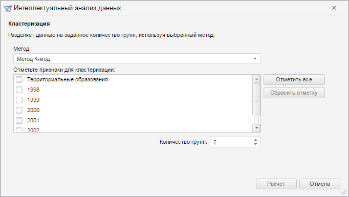 Класс CategoryDefinitionView реализует представление диалога «Кластеризация».