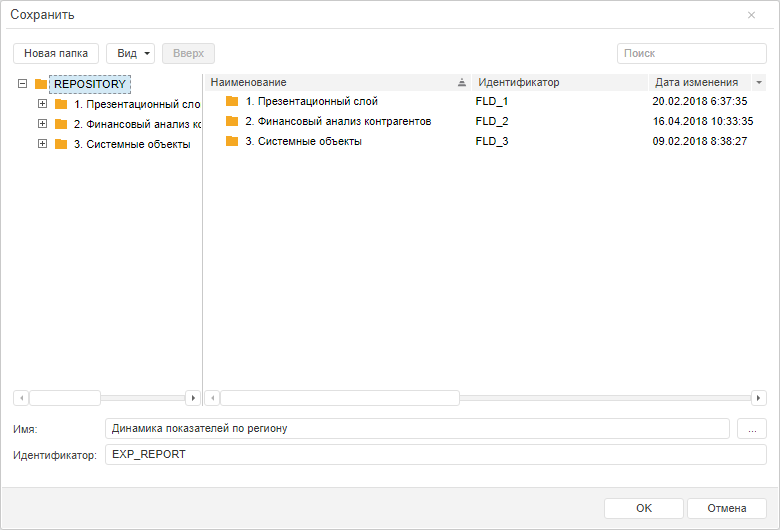 Диалог для сохранения объекта в репозитории вызывается при выборе пункта главного меню «Сохранить как».