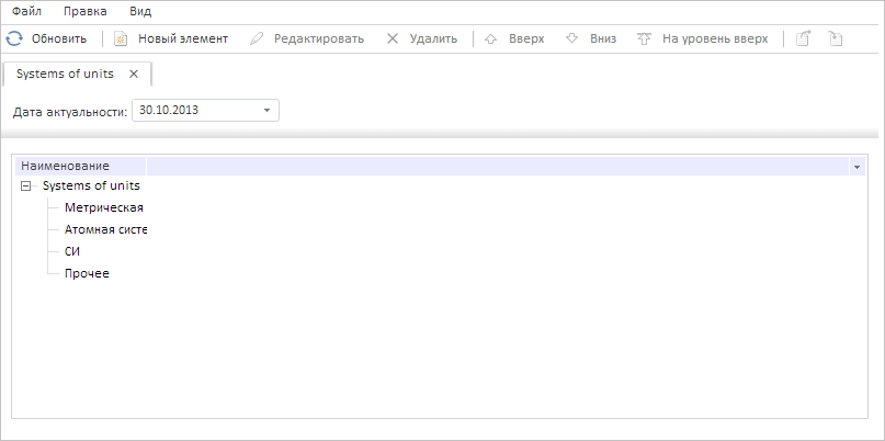 Идентификатор открытого справочника: UNITS_SYSTEMS