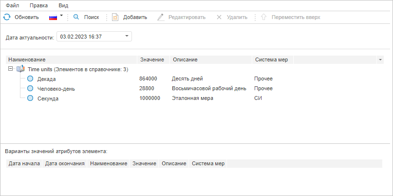 Контейнер со справочником НСИ может выглядеть следующим образом: