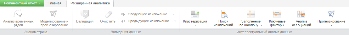 Класс AdvAnalyticsCatView реализует представление вкладки «Расширенная аналитика» ленты инструментов.