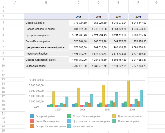 В результате выполнения примера на html-странице будет размещен компонент GridBox, на котором содержится табличный лист регламентного отчёта: