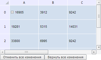 В результате выполнения примера были изменены значения двух ячеек и добавлены две кнопки - для отмены всех изменений и для возврата изменений назад: