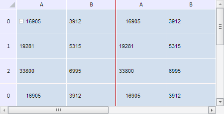 В результате выполнения примера был очищен кэш измерений таблицы и кэш размеров её видимой части. Первые два столбца и первые три строки были зафиксированы так, чтобы при нажатии они полностью не выделялись. Линия фиксации была окрашена в красный цвет: