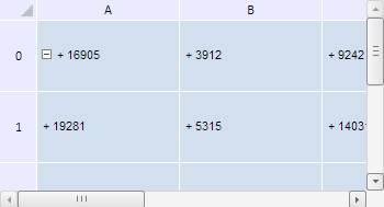 Для выполнения примера необходимо наличие на html-странице компонента TabSheet с наименованием «tabSheet» (см. «Пример создания компонента TabSheet»). Изменим ширину столбцов и высоту строк таблицы, а также добавим символ «+» к значениям каждой ячейки: