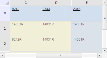 Для выполнения примера необходимо наличие на html-странице компонента TabSheet с наименованием «tabSheet» (см. «Пример создания компонента TabSheet»). Зададим диапазон ячеек B1:F3 и выделим его. Установим для видимых ячеек диапазона жёлтый цвет заливки, а для всех видимых реальных ячеек добавим к значению символ «R»: