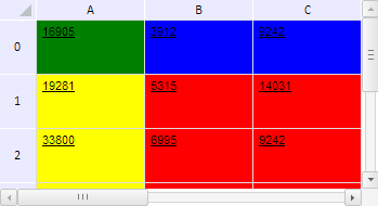 Для выполнения примера необходимо наличие на html-странице компонента TabSheet с наименованием «tabSheet» (см. «Пример создания компонента TabSheet»). Определим диапазон B1:D4, зафиксируем первую строку и первый столбец, входящие в него. Для полученных после разбития линиями фиксации диапазонов установим разные цвета заливки, а также определим ширину и высоту диапазона из нефиксированных ячеек: