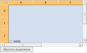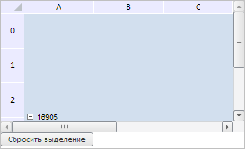 Для выполнения примера необходимо наличие на html-странице компонента TabSheet с наименованием «tabSheet» (см. «Пример создания компонента TabSheet»). Выделим всю таблицу, далее определим тип и начальную координату текущего выделения, объединим все выделенные ячейки и добавим кнопку для сброса данного выделения: