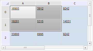 Для выполнения примера необходимо наличие на html-странице компонента TabSheet с наименованием «tabSheet» (см. «Пример создания компонента TabSheet»). Установим для ячеек, входящих в область выделения таблицы, новый стиль, выделим диапазон A0:B1 и разрешим восстановление области выделения ячеек после возвращения фокуса таблице: