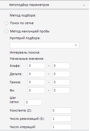 Панель автоподбора параметров экспоненциального сглаживания имеет следующий вид:
