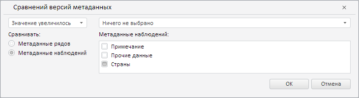 В результате выполнения примера в рассматриваемом мастере ревизия данных больше не указывается. Также было установлено, что значение увеличилось и сравнение производится по метаданным атрибута наблюдения «Страны»: