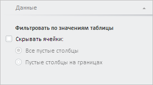 Панель настроек таблицы имеет наименование «Данные», расположена на панели свойств рабочей книги и может выглядеть следующим образом: