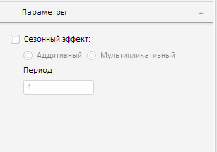 Для отображения панели необходимо выбрать на вкладке ленты инструментов «Вычисления», нажать на кнопку «Прогнозирование» и в раскрывающемся списке выбрать любой из доступных видов тренда, на вкладке панели свойств «Ряд» раскрыть панель «Параметры».