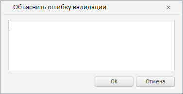 При нажатии на данную кнопку будет отображено окно для ввода текста, объясняющего выбранную ошибку валидации.