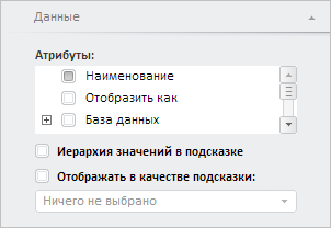 Для выполнения примера необходимо наличие на html-странице компонента WorkbookBox с наименованием «workbookBox» (см. «Пример создания компонента WorkbookBox». Отобразим панель «Данные» вкладки «Формат»: