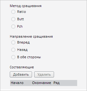 Компонент SpliceMethodWizard представляет собой мастер настройки сращивания временных рядов.