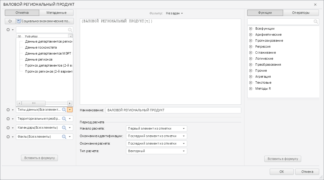 В результате был раскрыт первый раскрывающийся список левой панели компонента TransformDialog: