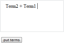 После выполнения примера на html-странице будет размещен редактор термов и кнопка с надписью «put terms», при нажатии на которую в список термов будут добавлены терм с текстом «Term1», пользовательский терм «+» и литеральный терм «Term2»: