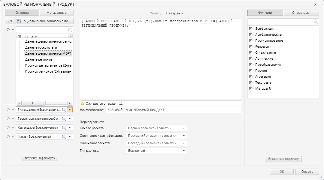 Откроем первую раскрывающуюся панель левой колонки окна и дважды щелкнем по третьему элементу. В результате в редактор выражений будет добавлен новый элемент:
