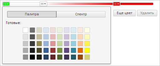 В результате выполнения примера был создан новый бегунок с возможностью выбора цвета, был изменен его цвет. Откроем меню выбора цвета, щёлкнув по добавленному бегунку: