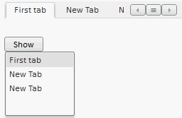 После выполнения примера на html-странице будет размещен компонент TabControl и кнопка с надписью «Show». При помощи вкладки со знаком «+» можно добавить новые вкладки. При нажатии на кнопку раскроется список заголовков вкладок. При нажатии на элементы списка будут раскрываться соответствующие вкладки.