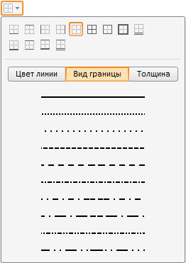 Доступна панель для выбора типа границы (сверху), по умолчанию она скрыта.