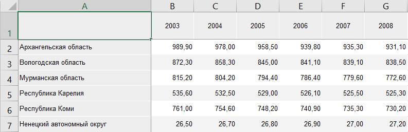 На основе данных таблицы можно создать: