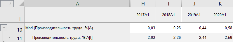 После применения функции в таблицу данных для каждого выделенного ряда будет добавлен ряд с наименованием вида «Mod(<Имя_Ряда>)», содержащий результаты расчета. Например: