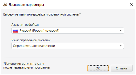 Выбор языка интерфейса и справочной системы