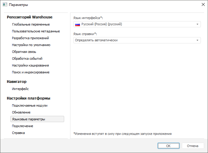 Настройка язык справочной системы и интерфейса в настольном приложении