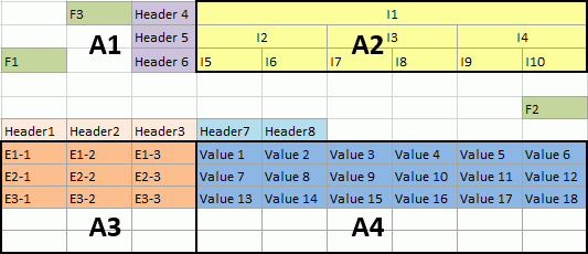 1. Столбцы, соответствующие фиксированным ячейкам. Заголовки будут сгенерированы автоматически.