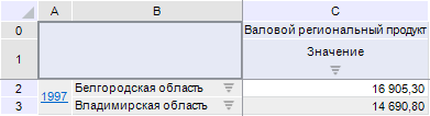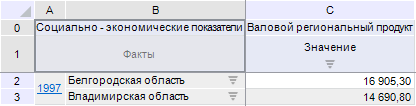 2 Rows. Наименования измерений в строках из боковика.