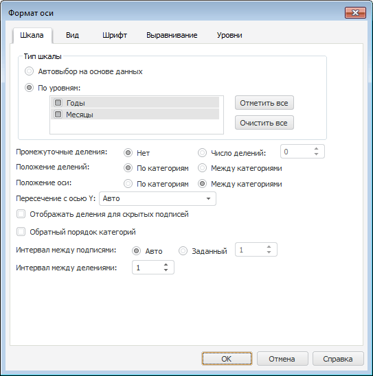 Если свойство BuildPointNameHierarchy имеет значение True, то в свойствах диаграммы появляются дополнительные настройки «Тип шкалы»: