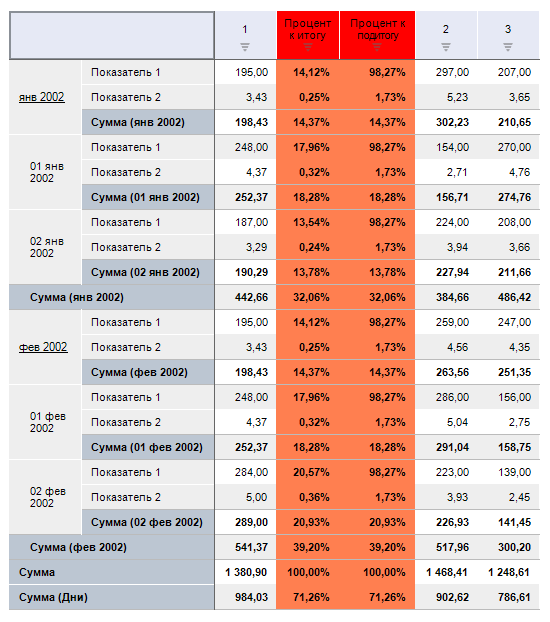 //Вычисляемый показатель - Процент к итогу