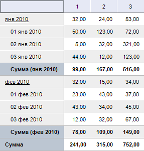 После выполнения примера для таблицы по всем уровням иерархии будут рассчитываться итоги (сумма значений):