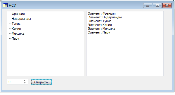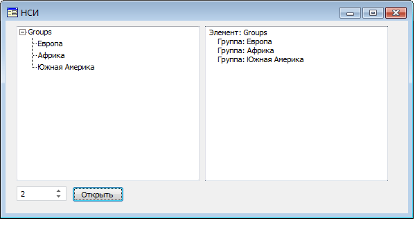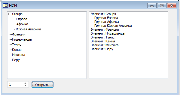 После выполнения примера справочник будет открыт с заданным значением параметра RDSDIMTYPE. Данные в виде дерева будут отображены в компоненте DimensionTree и описаны в компоненте Memo.