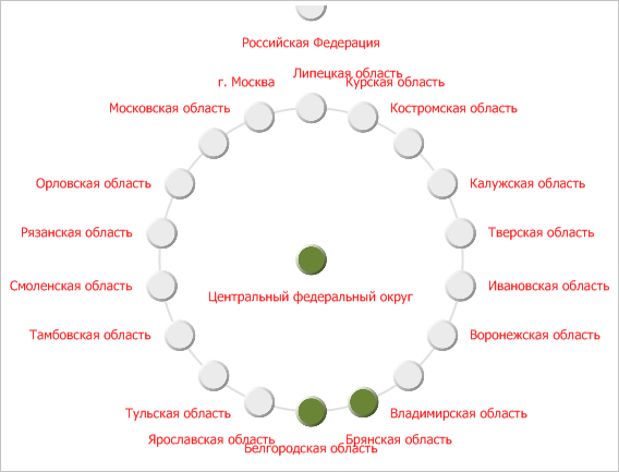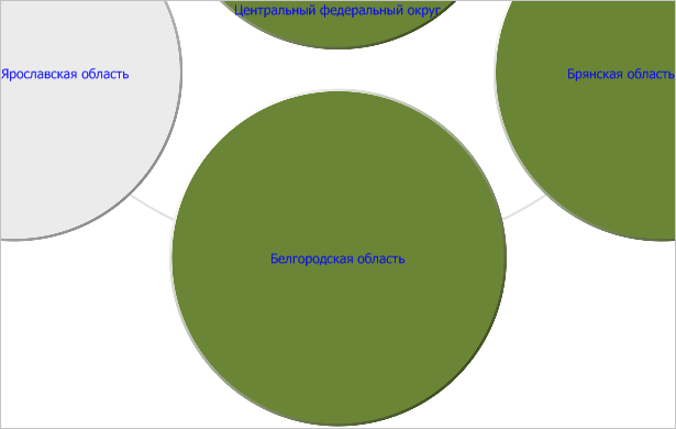 В результате выполнения примера для элементов пузырькового дерева было установлено выравнивание по верхнему краю, длительность анимации пузырьков, равная 3 секундам, второй уровень измерения, по которому выбираются данные, а для внешний подписей к пузырькам дерева был задан красный цвет: