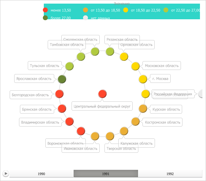В результате выполнения примера легенда с интервалами пузырькового дерева была выравнена по верхней и правой границе. Также для неё была применена заливка бирюзового цвета: