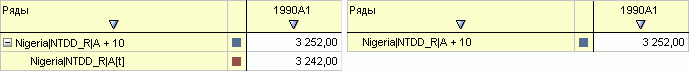 После выполнения примера для первого ряда рабочей книги будет задано преобразование, но дочерние ряды добавлены не будут. Пример вычисляемого ряда с добавленными дочерними рядами (слева) и без добавления дочерних рядов (справа):