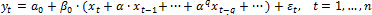 С помощью данного преобразования уравнение с бесконечным числом лагов преобразуется в авторегрессионное уравнение, для которого требуется оценить лишь три коэффициента.