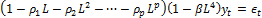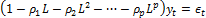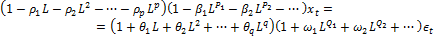 При p = 0, т.е. при отсутствии несезонной авторегрессии, модель с сезонной авторегрессией трансформируется в простую авторегрессионную модель вида: