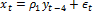 Также может быть рассмотрена модель, в которой некоторые авторегрессионные коэффициенты предполагаются равными нулю. При таких условиях зависимость, к примеру, текущего значения yt только от yt-4 будет описана моделью: